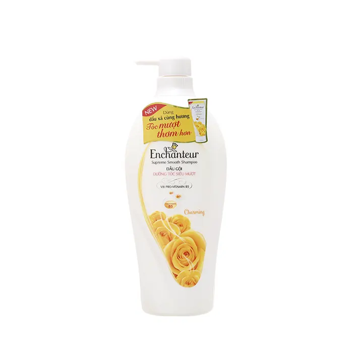 Dầu gội dưỡng tóc siêu mượt Enchanteur Charming dành cho phái nữ, dùng được cho mọi loại tóc và da đầu. Sản phẩm thuộc dòng chai với khối lượng 650 gr. Dầu gội dưỡng tóc siêu mượt Enchanteur Deluxe Charming với công thức đặc biệt chứa các loại Amino Protein và Vitamin B5 giúp tóc mềm mượt, không xoăn rối đồng thời mang hương nước hoa Pháp tinh tế, gợi cảm suốt cả ngày, biệt chăm sóc cho tóc khô, hư tổn và thiếu sức sống. Sản phẩm thuộc dòng dạng dây gói.